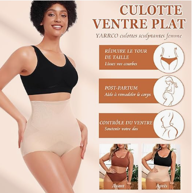 - EFFET REHAUSSEUR FESSIER - Cette culotte gainante affine le ventre et rehausse les fesses. La gaine ventre plat pour femme, avec son contour fessier lissé, soutient le dos et met parfaitement en valeur les hanches.